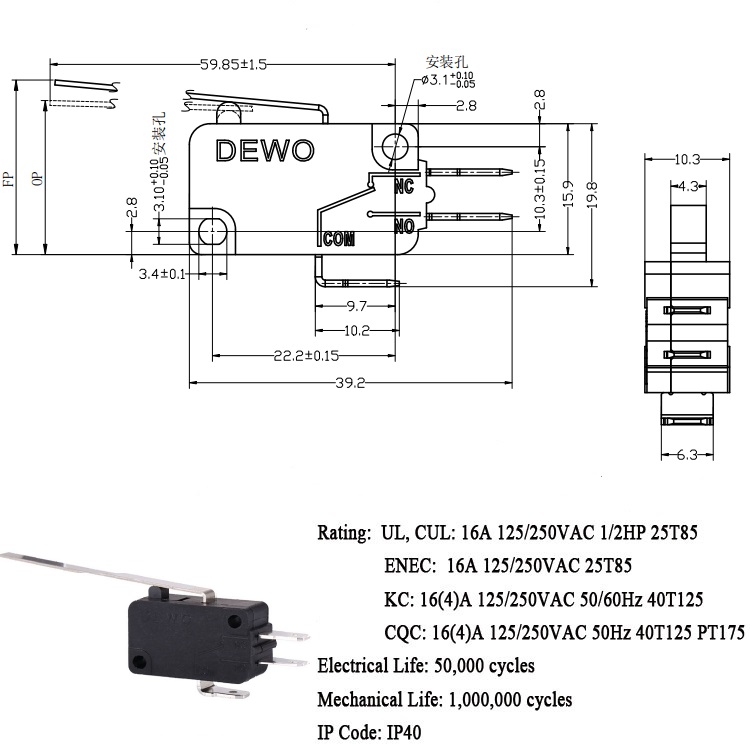 Mechanical life:1,000,000 cycles