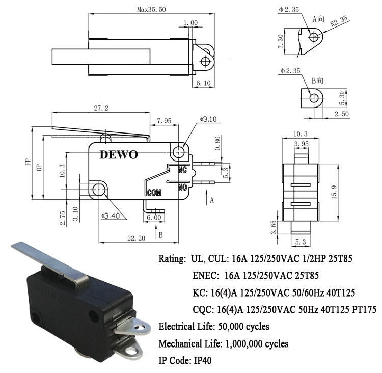 DV-16-A02-AA1-100E型微動(dòng)開關(guān)