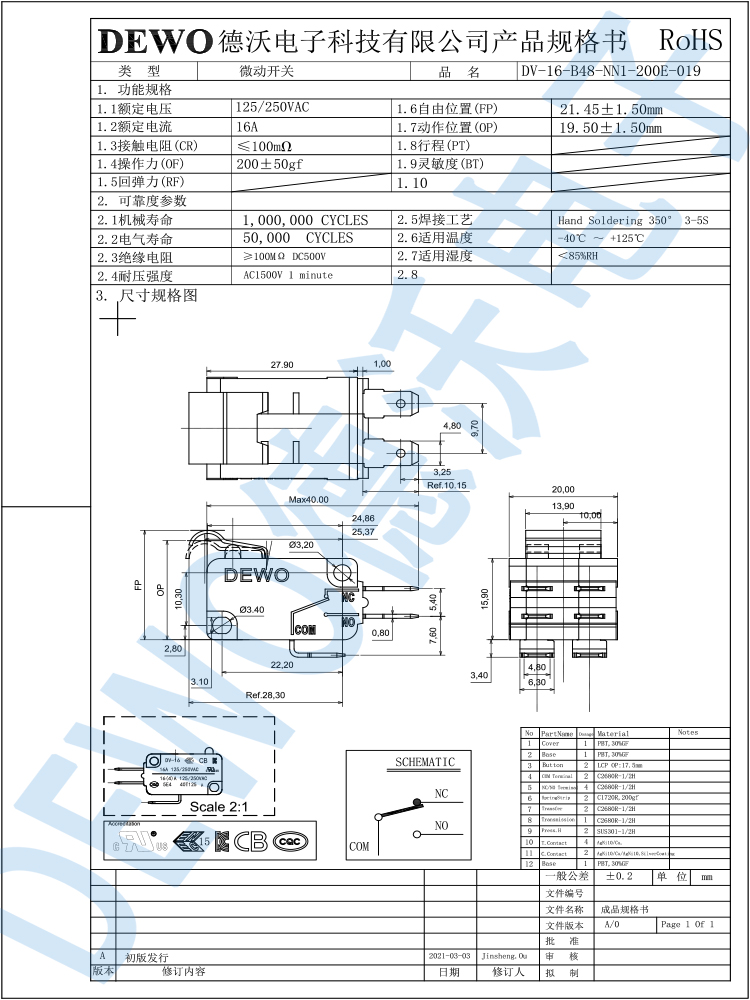 DV-16-B48-NN1-200E-019雙聯(lián)微動(dòng)開(kāi)關(guān)